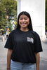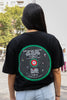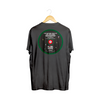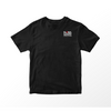 - Black t-shirt with screen printed logo on front and back