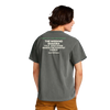 Pepper-dyed, ring-spun cotton, screen-printed logo front and back. Relaxed, unisex fit, preshrunk, made to be worn until it feels like part of you.